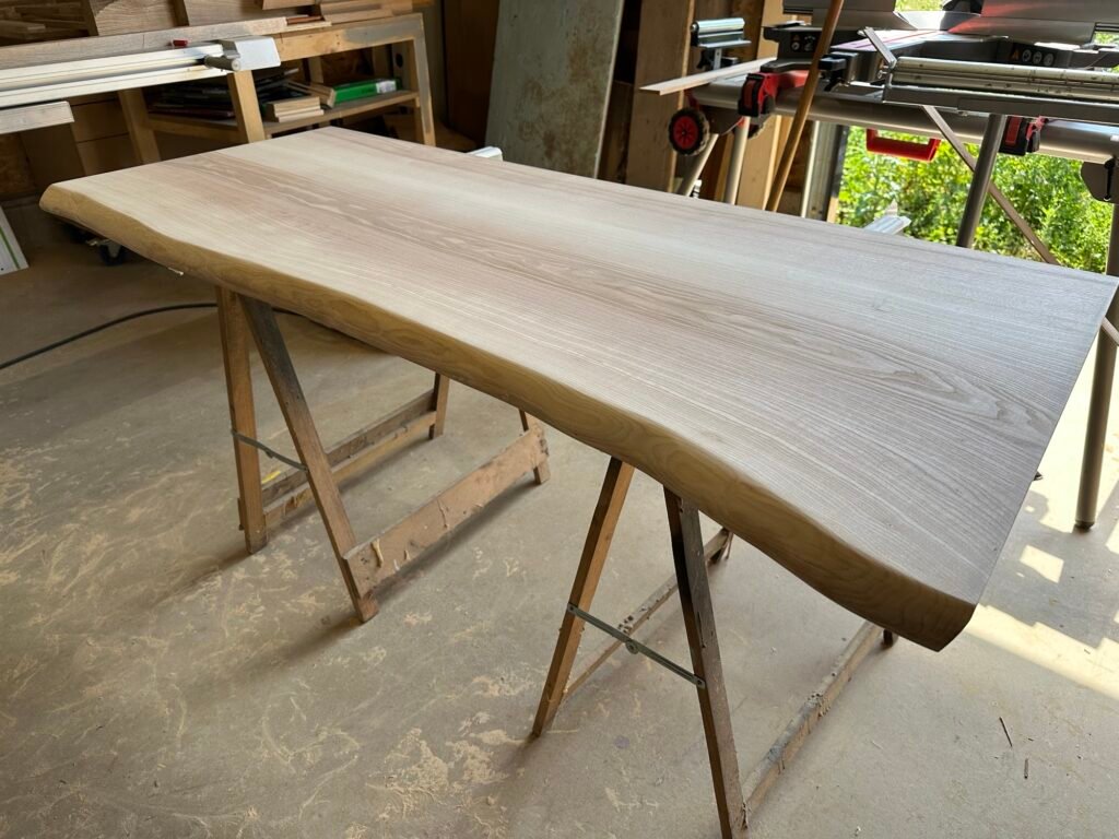 Plateau de table en frêne massif live edge verni